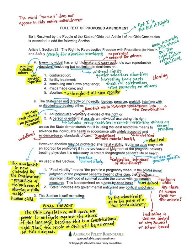 Update: Given that the pro-abortion lobby is pushing Issue 1 in Ohio (Nov. 7, 2023 election), we are sharing this explanation of the proposed constitutional amendment that will allow both child murder and mutilation if passed. Vote “NO” on Issue 1 Nov. 7th. It is an abomination (see below).