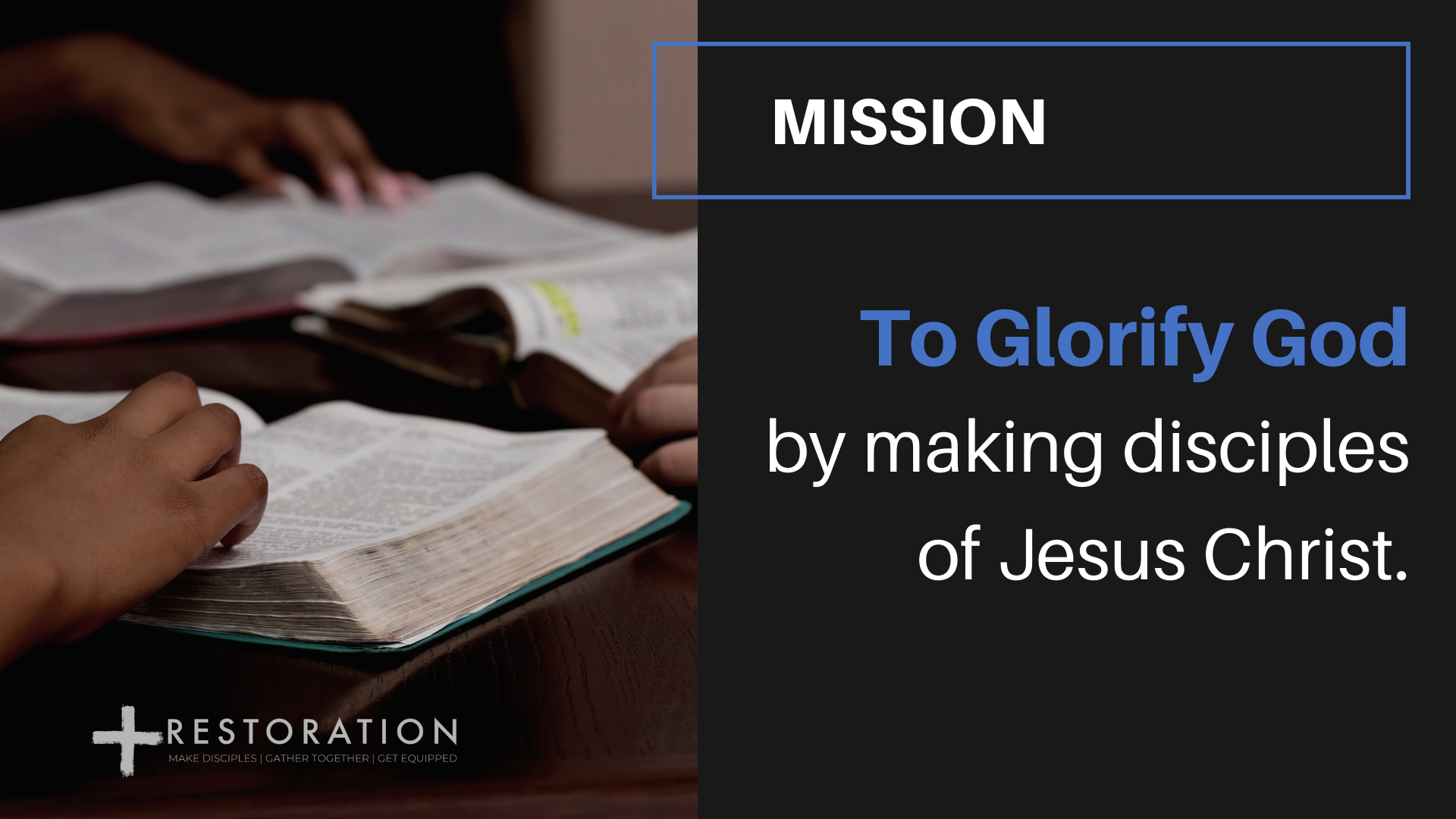Our mission is simple: To glorify God by making disciples of Jesus Christ. This is in direct obedience to Matthew 28:18-20. Every dollar of our budget and every aspect of our ministry functions to fulfill this Great Commission.